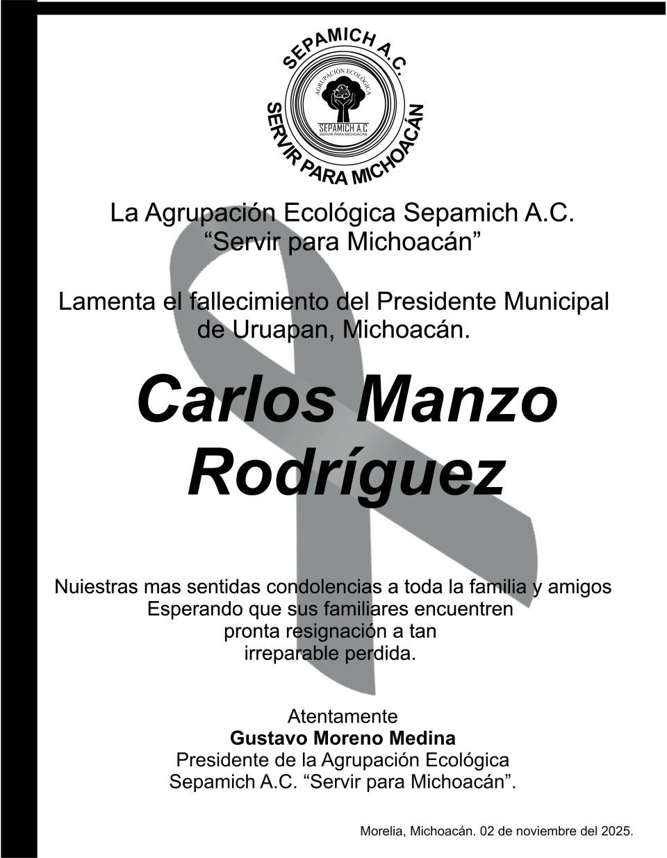 LAMENTAMOS EL FALLECIMEINTO DEL PRESIDENTE MUNICIPAL DE URUAPAN CARLOS MANZO by Redacciónnoviembre 2, 2025 Share1